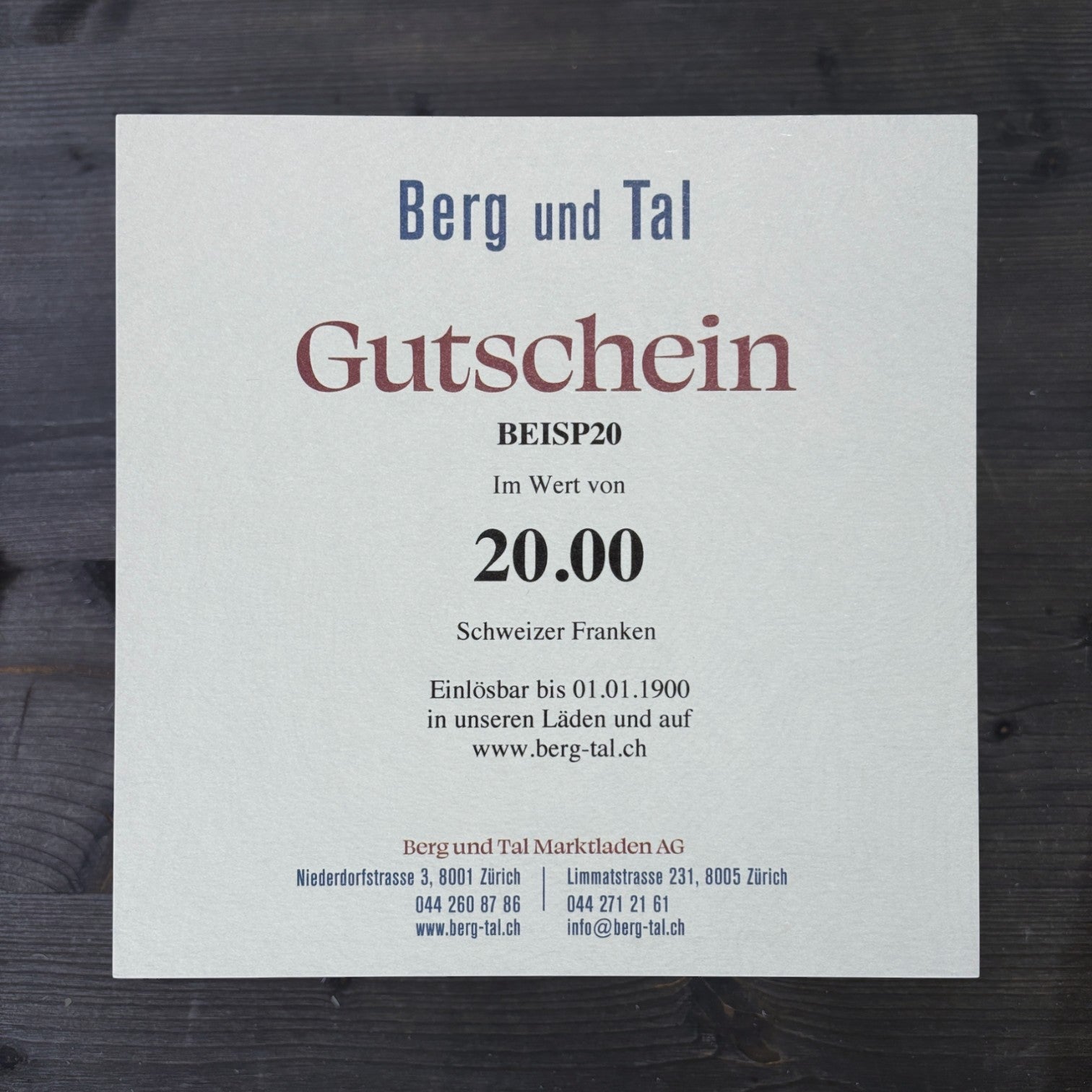 Berg und Tal Gutschein 20 Franken