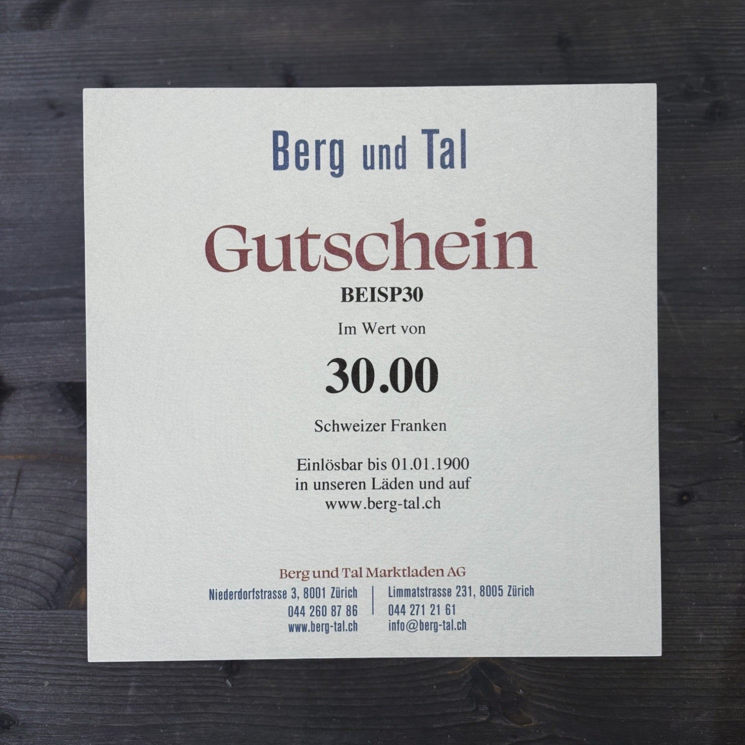 Berg und Tal Gutschein 30 Franken